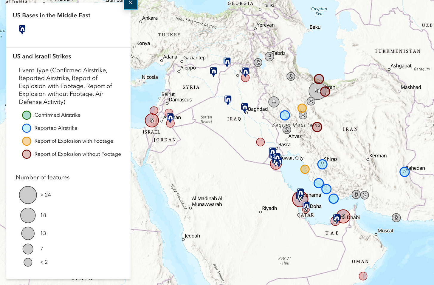 Shortly after the first wave of strikes by the U.S. and Israel, Iranian forces swiftly retaliated by striking previously evacuated U.S. bases throughout the Middle East, including facilities in Bahrain, Qatar, the United Arab Emirates, Kuwait, Jordan, and Saudi Arabia. Among Gulf allies, Iran struck hotels, residential areas, and airports in Dubai (UAE), Kuwait, Iraq, Bahrain, Qatar, and Tel Aviv. As of 9:30 am ET today, U.S. CENTCOM has confirmed the death of three U.S. servicemembers and the serious injury of five other servicemembers as part of Operation Epic Fury.